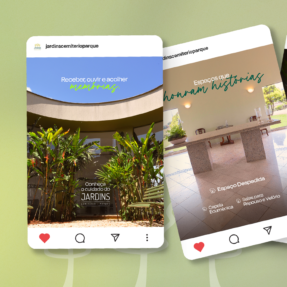 Criada para traduzir, com sensibilidade, o compromisso do Jardins em tornar cada despedida mais serena e acolhedora, a campanha nasce para comunicar um diferencial que vai muito além dos serviços: o respeito com cada história, cada família e cada memória que passa pelos seus espaços.
