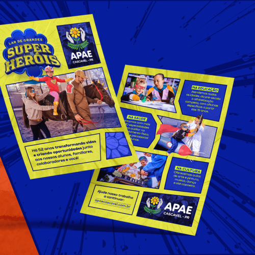 Ficha técnica: Agência: Amexcom Anunciante: APAE - Cascavel Nome: APAE – “Lar de Super-Heróis” Produto: APAE Direção criativa: Rafael Greiner | Carol Mincarone | Eduarda Wielewski Criação: Iury Plens | Amanda Baldissera Redação: Amanda Baldissera Direção de arte: Iury Plens Revisão: Luis Gustavo Mídia: Luiza Boschirolli Atendimento: Victória Malta | Leticia Sampaio Aprovação: João Maschio Produtora: FineArt